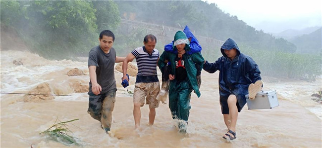 九圩鎮(zhèn)紀(jì)委書記覃國(guó)富接到信息后,馬上帶著幾名黨員干部提著急救箱和救援物資出發(fā),并聯(lián)系了鎮(zhèn)衛(wèi)生院的救護(hù)車在未受淹的安全地帶等候,人員則徒步3公里進(jìn)入內(nèi)興屯。