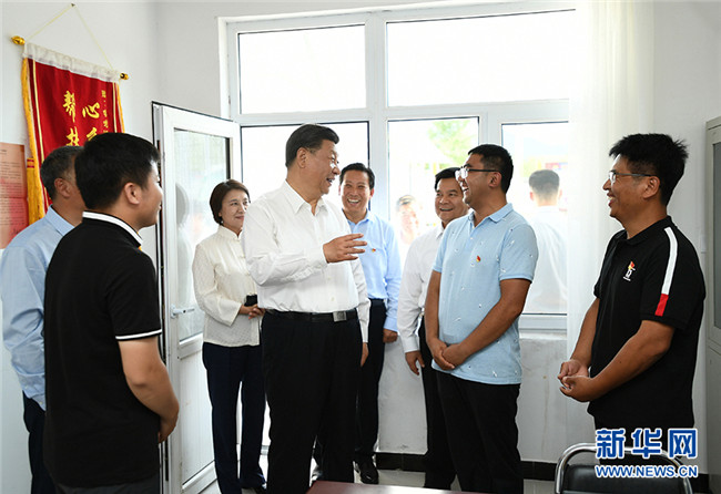 7月15日至16日,中共中央總書記、國家主席、中央軍委主席習近平在內蒙古考察并指導開展“不忘初心、牢記使命”主題教育。這是15日下午,習近平在赤峰市喀喇沁旗河南街道馬鞍山村黨群服務中心了解基層黨建、民族團結和鄉(xiāng)村振興情況。 新華社記者 謝環(huán)馳 攝