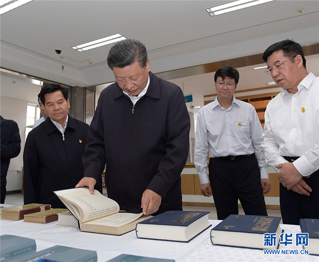 7月15日至16日,中共中央總書記、國家主席、中央軍委主席習近平在內蒙古考察并指導開展“不忘初心、牢記使命”主題教育。這是16日,習近平在位于呼和浩特市的內蒙古大學了解學校建設發(fā)展歷史、教學科研工作情況。 新華社記者 李學仁 攝