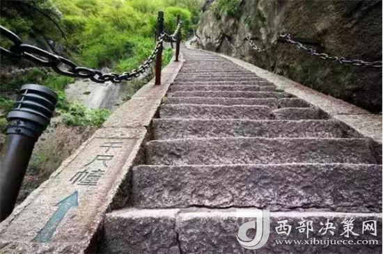 登華山有三道險關(guān),合稱華山三大險,當(dāng)?shù)亓鱾髦@樣一句民謠:“千尺幢, 百尺峽,老君犁溝往上爬。”
