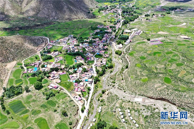 鳥瞰達東村景區(qū)(7月20日無人機拍攝)。西藏拉薩市柳梧鄉(xiāng)達東村是一個千年古村,也曾是一個貧困村。近年來,依托秀美的自然風(fēng)光、深厚的歷史文化和淳樸的風(fēng)土人情,當(dāng)?shù)卣畬嵤┪幕糜萎a(chǎn)業(yè)精準扶貧,使達東村蛻變成為鄉(xiāng)村旅游勝地。新華社記者普布扎西攝
