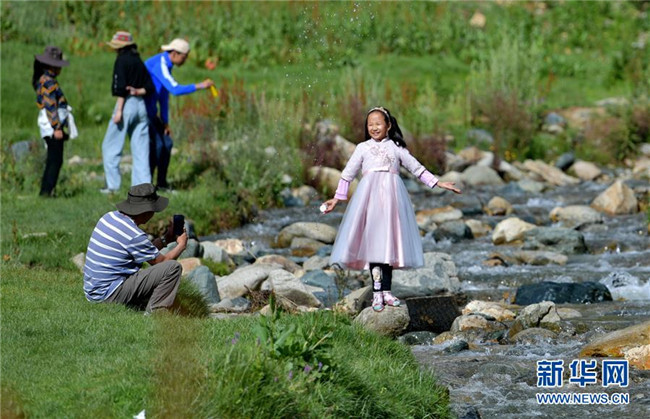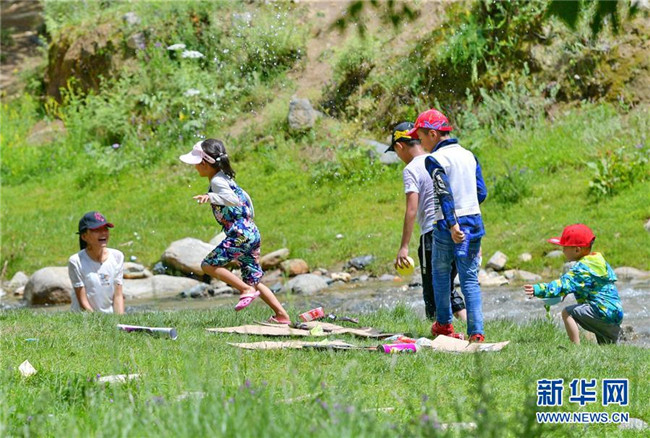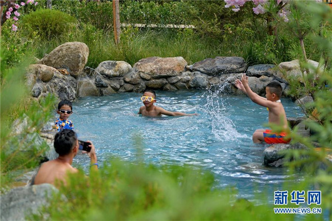 孩子們在達東村景區(qū)溫泉里嬉戲(7月20日攝)。西藏拉薩市柳梧鄉(xiāng)達東村是一個千年古村,也曾是一個貧困村。近年來,依托秀美的自然風(fēng)光、深厚的歷史文化和淳樸的風(fēng)土人情,當(dāng)?shù)卣畬嵤┪幕糜萎a(chǎn)業(yè)精準扶貧,使達東村蛻變成為鄉(xiāng)村旅游勝地。新華社記者張汝鋒攝