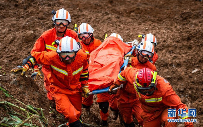 7月24日,救援人員從山體滑坡現(xiàn)場(chǎng)運(yùn)出遇難者遺體。新華社記者 陶亮 攝