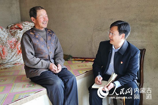 張驊走訪建檔立卡貧困戶高玉良家,仔細詢問高玉良老人發(fā)展庭院經(jīng)濟的意愿以及脫貧過程中還有什么困難。