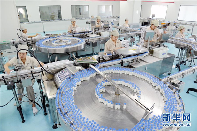 位于沈陽的東北制藥集團(tuán)的員工在生產(chǎn)線上作業(yè)(資料照片)。新華社發(fā)(東北制藥供圖)