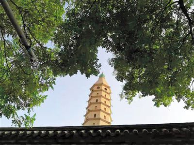 北塔是一座方形九層十一級(jí)樓閣式磚塔,海寶塔建筑風(fēng)格獨(dú)特,方形的塔身,四面的券門,眾多的棱角,四角的尖頂,為中國古塔所罕見,被視為中國古代建筑的杰作。