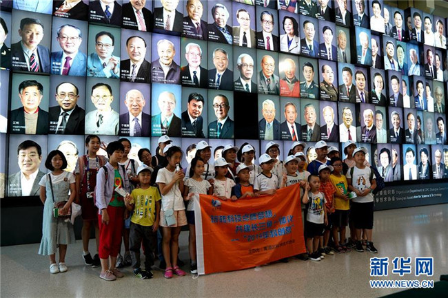 8月21日,觀眾在上海科學(xué)會(huì)堂的院士墻前留影。
