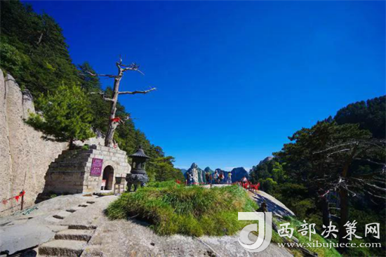 華山中峰居東、西、南三峰中央,是依附在東峰西側(cè)的一座小峰,今人將它列為華山主峰之一。峰上林木蔥蘢,環(huán)境清幽,奇花異草多不知名,游人穿行其中,香浥禁袖。