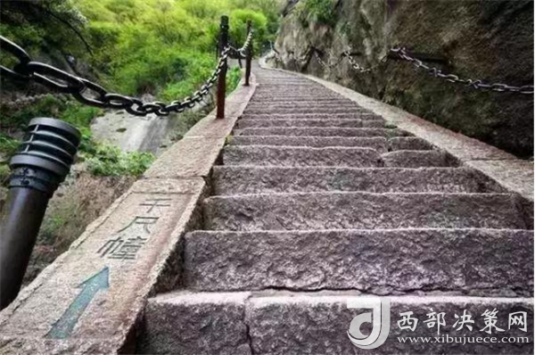 千百年前,陡峭如削的華山,艱險異常,難以登攀,只能“望山興嘆”“遠而望之”。后來人們循猿徑,依山就勢,巧妙地利用天設(shè)地造的石隙嶺脊,開鑿出了登山道路,始有天下奇觀“自古華山一條路”。