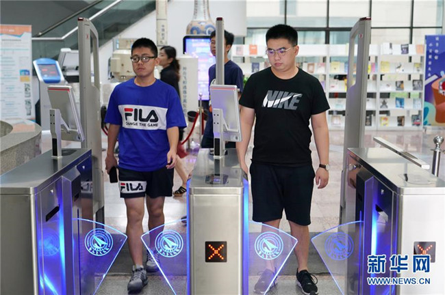9月4日,西北工業(yè)大學(xué)學(xué)生“刷臉”進(jìn)出圖書館。