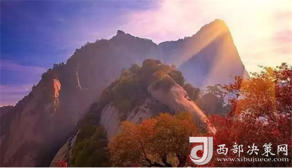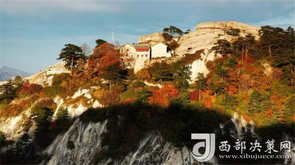秋天的華山,溫度適中,紅葉滿山,山崖為底,松檜為墨,是休閑旅游的最佳季節(jié)。