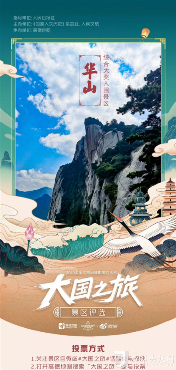 2019大國之旅景區(qū)評選活動由人民日報社指導(dǎo),《國家歷史人文》雜志社、人民旅游主辦,高德地圖承辦,于9月2日正式啟動。此次活動采取大眾投票+高德地圖旅游大數(shù)據(jù)+專家及媒體評審相結(jié)合的形式,得出最終獲獎名單。游客通過新浪微博關(guān)注景區(qū)官博“ 大華山智慧旅游”為華山景區(qū)投票,智旅公司協(xié)助高德地圖完善了華山景區(qū)地圖板塊的校準(zhǔn)和更新,此次活動的開展,華山景區(qū)的品牌影響力和知名度也再次得到提升。