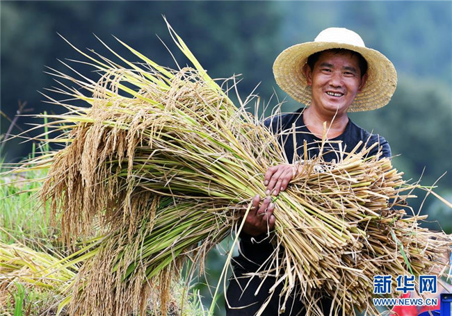 9月17日,貴州省榕江縣計劃鄉(xiāng)計劃村陽開苗寨的村民在收割水稻。 近年來,貴州省圍繞產(chǎn)業(yè)選擇、培訓(xùn)農(nóng)民、技術(shù)服務(wù)、資金籌措、組織方式、產(chǎn)銷對接、利益聯(lián)結(jié)、基層黨建等“八要素”,通過“減、融、服”創(chuàng)新推進(jìn)農(nóng)村產(chǎn)業(yè)結(jié)構(gòu)調(diào)整,既帶動了農(nóng)戶增收,也推動了特色產(chǎn)業(yè)做大做強(qiáng)。 新華社記者 楊文斌 攝