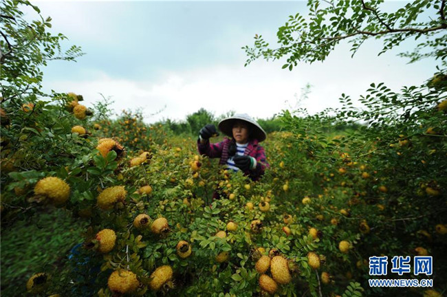 貴州省龍里縣谷腳鎮(zhèn)的農(nóng)民在采摘刺梨鮮果(2018年8月22日攝)。 近年來,貴州省圍繞產(chǎn)業(yè)選擇、培訓(xùn)農(nóng)民、技術(shù)服務(wù)、資金籌措、組織方式、產(chǎn)銷對接、利益聯(lián)結(jié)、基層黨建等“八要素”,通過“減、融、服”創(chuàng)新推進(jìn)農(nóng)村產(chǎn)業(yè)結(jié)構(gòu)調(diào)整,既帶動了農(nóng)戶增收,也推動了特色產(chǎn)業(yè)做大做強(qiáng)。 新華社記者 楊文斌 攝