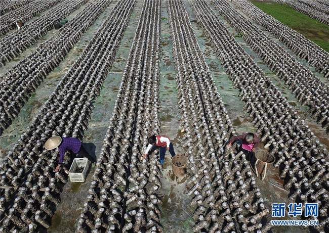 農(nóng)民在貴州省銅仁市萬山區(qū)敖寨鄉(xiāng)中華山村的食用菌基地里采摘木耳(2018年10月29日無人機(jī)拍攝)。 近年來,貴州省圍繞產(chǎn)業(yè)選擇、培訓(xùn)農(nóng)民、技術(shù)服務(wù)、資金籌措、組織方式、產(chǎn)銷對接、利益聯(lián)結(jié)、基層黨建等“八要素”,通過“減、融、服”創(chuàng)新推進(jìn)農(nóng)村產(chǎn)業(yè)結(jié)構(gòu)調(diào)整,既帶動了農(nóng)戶增收,也推動了特色產(chǎn)業(yè)做大做強(qiáng)。 新華社記者 楊文斌 攝