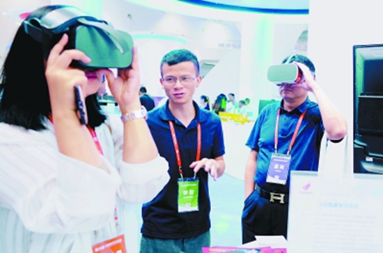 7月5日第二十屆中國海外學子創(chuàng)業(yè)周上,觀眾體驗VR產品(圖源:新華社)