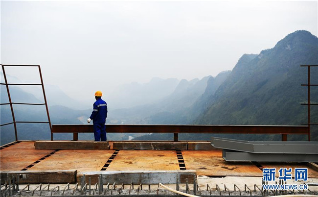 9月26日,一名建設者在平塘特大橋上眺望。