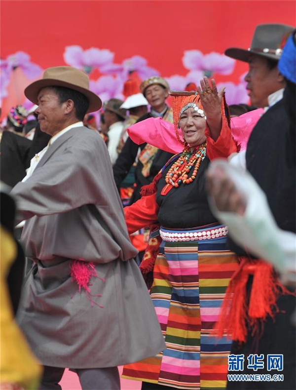 9月29日,觀眾身著民族特色服裝參加聯(lián)歡活動。新華社記者晉美多吉攝