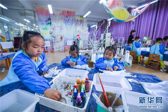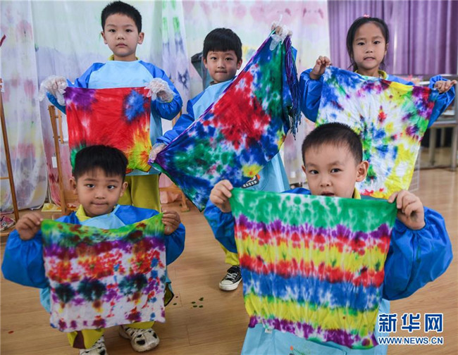 今年以來,浙江省長興縣夾浦鎮(zhèn)中心幼兒園依托當(dāng)?shù)貍鹘y(tǒng)布藝文化基礎(chǔ)開設(shè)“七彩課堂”,引進(jìn)布藝、扎染等傳統(tǒng)工藝課程,讓孩子們感受民間工藝的魅力。 新華社記者 徐昱 攝