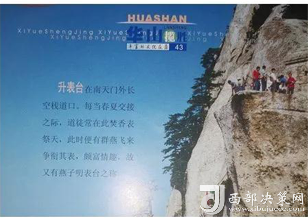 仰天池、洞里甕、全真崖、升表臺(tái),以上就是華山四大謎,帶大家游覽了一番,您覺得有更好的解釋嗎?如果有可以給我們留言,讓我們大家共同探索華山的未解之謎,用彩筆為華山之謎畫下最美的謎底吧?。ü└澹喝A旅集團(tuán)營(yíng)銷中心)