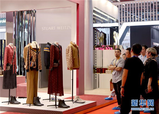 11月3日,在品質(zhì)生活展區(qū)內(nèi),展商對(duì)時(shí)裝的陳列效果進(jìn)行最后確認(rèn)。新華社記者劉穎攝