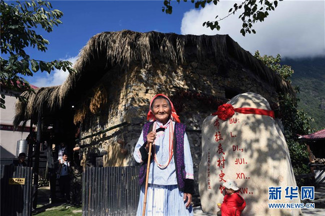11月2日,云南福貢縣鹿馬登鄉(xiāng)干布村的一位傈僳族老人在村民以前居住的茅草房前。新華社記者 楊宗友 攝