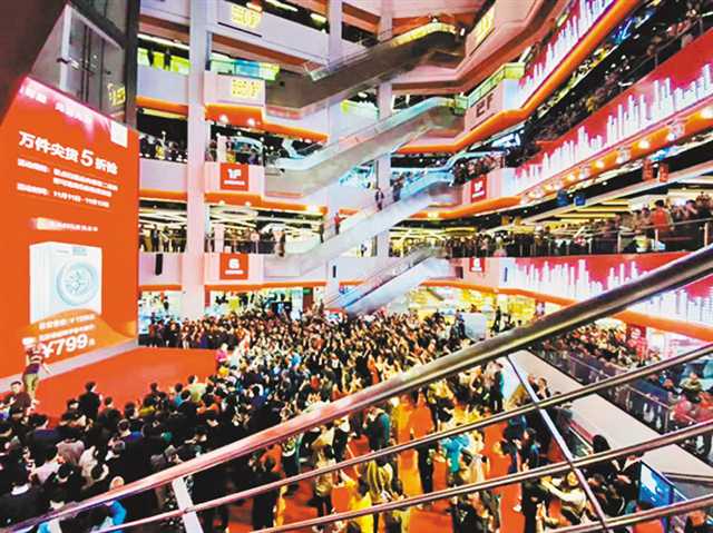 京東電器超級(jí)體驗(yàn)店重慶店現(xiàn)場(chǎng)人頭攢動(dòng)。記者張亦筑攝