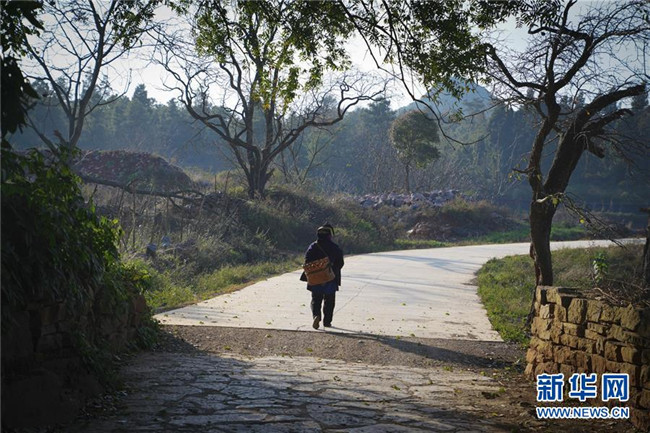 11月28日,69歲的大糯黑村村民何蘭香在村里的商店買完?yáng)|西后回家。