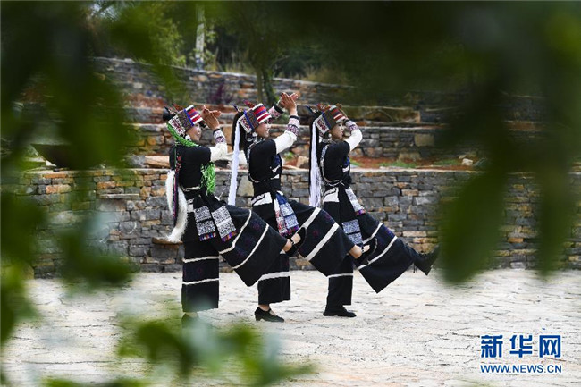 11月28日,大糯黑村村民在進(jìn)行彝族大三弦舞表演。新華社記者王全超攝