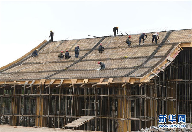 11月28日,工人們?cè)诖笈春诖宓膭≡航ㄔO(shè)現(xiàn)場(chǎng)工作。新華社記者周華攝