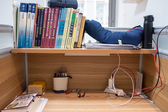 11月23日,北京望京一家自習(xí)室的座位。連續(xù)使用自習(xí)室的顧客,可以在這里儲(chǔ)存自己的物品。