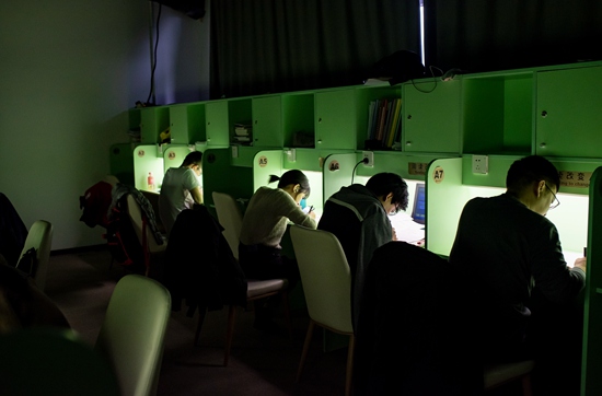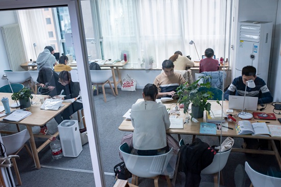 11月21日,劉同學(xué)在北京亦莊的一家自習(xí)室內(nèi)。正在備考法律碩士的她每天在這里學(xué)習(xí)超過10個(gè)小時(shí)。