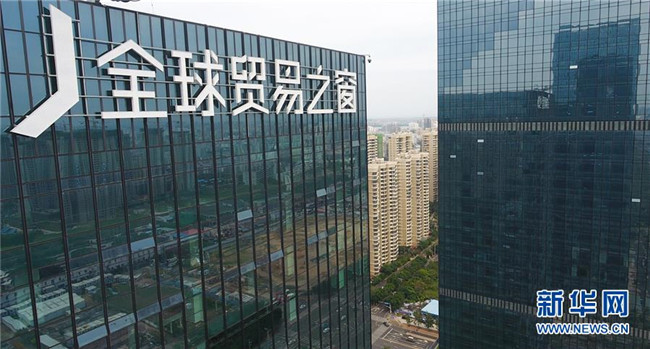 12月5日無人機拍攝的位于??谑写笥⑸紺BD的海口全球貿易之窗大廈。 新華社記者 楊冠宇 攝