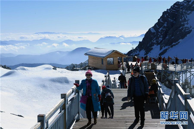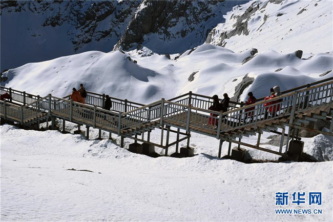 冬季,云南省麗江玉龍雪山景色秀美壯觀,吸引了眾多游客。