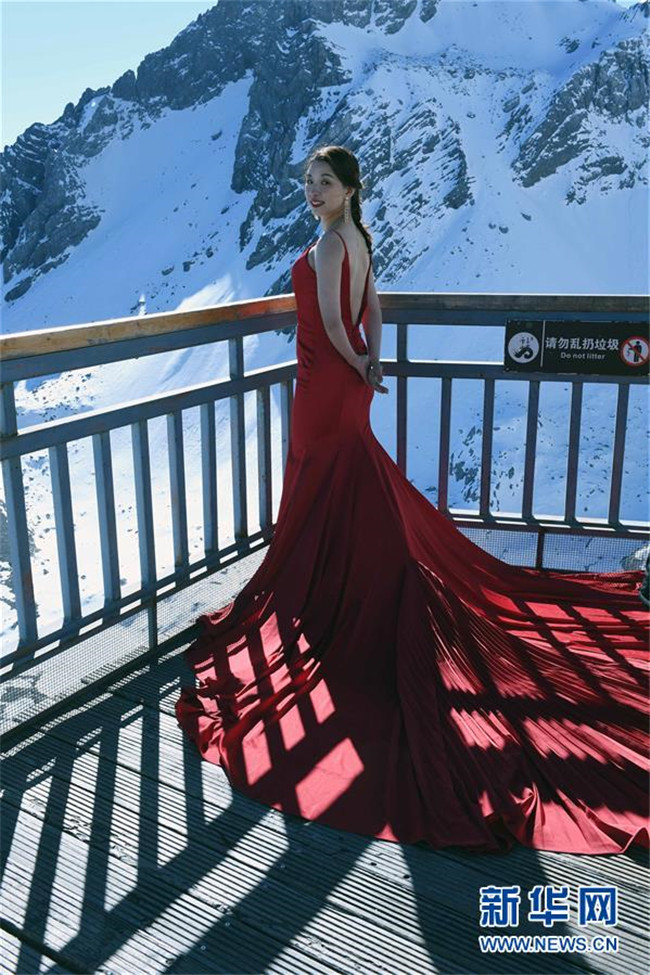 12月10日,游客在玉龍雪山拍照留影。新華社記者楊宗友攝
