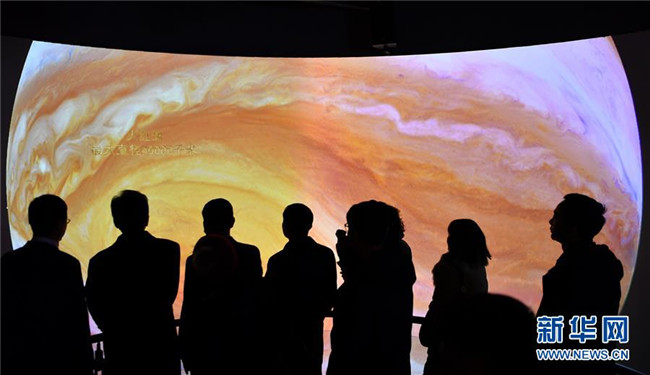 12月14日,觀眾參觀藏域星球天文科普體驗館。當日,藏域星球天文科普體驗館在西藏拉薩開館試運營,這是西藏第一家天文科普體驗館。據(jù)介紹,此館以感知宇宙、認知宇宙、探索宇宙為主題,以參觀者的第一感官體驗為設計導向,利用互動投影、懸浮投影、物體跟蹤、人體捕捉、體感互動、VR等高科技手段展示藏地的神秘,揭示宇宙的奧秘。新華社記者李鑫攝