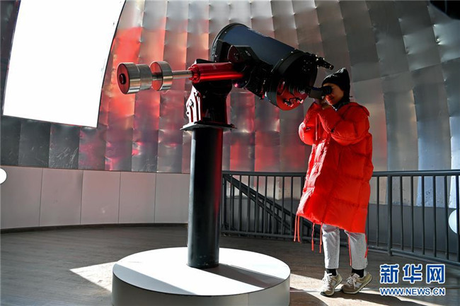 12月14日,參觀者在藏域星球天文科普體驗館體驗天文望遠鏡觀測。當日,藏域星球天文科普體驗館在西藏拉薩開館試運營,這是西藏第一家天文科普體驗館。據(jù)介紹,此館以感知宇宙、認知宇宙、探索宇宙為主題,以參觀者的第一感官體驗為設計導向,利用互動投影、懸浮投影、物體跟蹤、人體捕捉、體感互動、VR等高科技手段展示藏地的神秘,揭示宇宙的奧秘。新華社記者李鑫攝