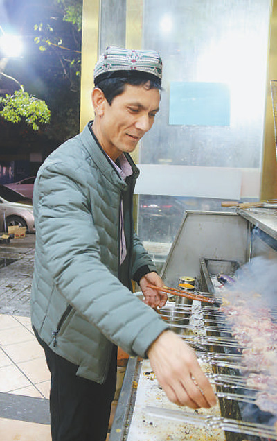 曾在阿布拉江烤肉王餐廳做過服務(wù)員的如則托合提夫婦,去年從和田老家來到南昌,經(jīng)過一年多學(xué)習(xí),今年5月選擇“單飛”,開了一家屬于自己的燒烤店。“租門面、搞裝修,都是阿卜杜拉一手幫我弄的,還提供了兩萬元啟動(dòng)資金。”談起眼下的生活,如則托合提非常滿意。