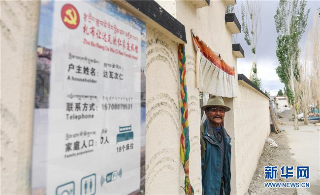 76歲的達(dá)瓦次仁在位于西藏阿里地區(qū)札達(dá)縣托林鎮(zhèn)札布讓村的家門口(7月30日攝)。 新華社記者 晉美多吉 攝