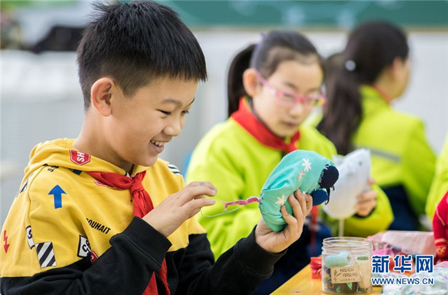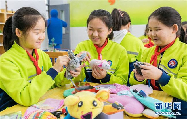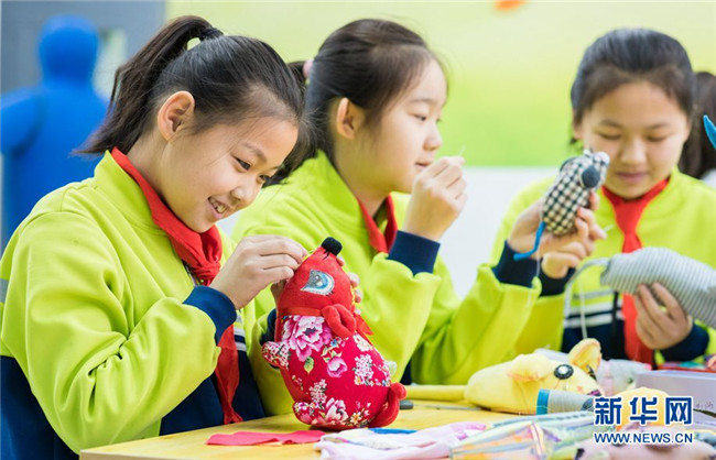 當(dāng)日,內(nèi)蒙古呼和浩特市玉泉區(qū)通順街小學(xué)“巧手社團(tuán)”的學(xué)生在老師的指導(dǎo)下,利用身邊的布頭、絲綿等廢棄物,制作生肖鼠布藝作品,表達(dá)對(duì)新年的美好祝愿。近年來(lái),玉泉區(qū)教育部門大力推動(dòng)“傳統(tǒng)文化進(jìn)校園”活動(dòng),在當(dāng)?shù)貙W(xué)校里開設(shè)剪紙、面塑、戲曲等民間藝術(shù)課程,讓學(xué)生感受傳統(tǒng)文化的魅力。 新華網(wǎng) 發(fā)(丁根厚 攝)