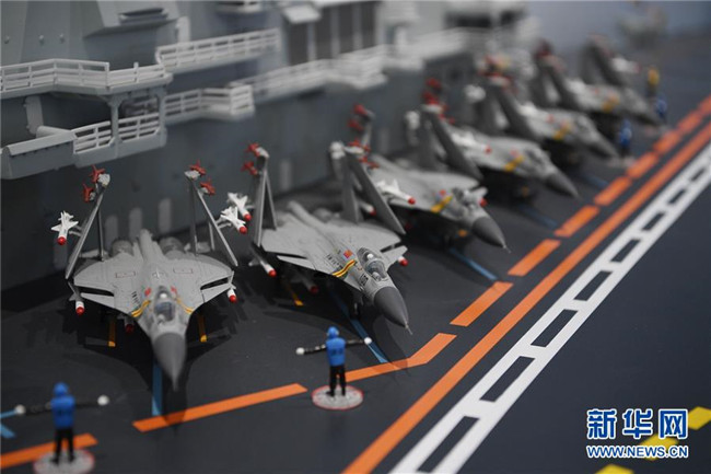12月30日拍攝的銀川航空館展出的航母艦載機(jī)模型。新華社記者王鵬攝