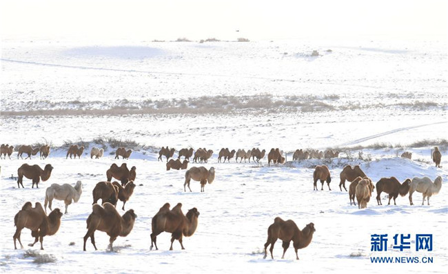 12月30日,牧民在新疆吉木乃縣“萬駝園”放駱駝。新華社記者 沙達提 攝