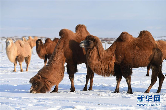 12月30日,一群駱駝在新疆吉木乃縣“萬駝園”覓食。新華社記者 沙達提 攝