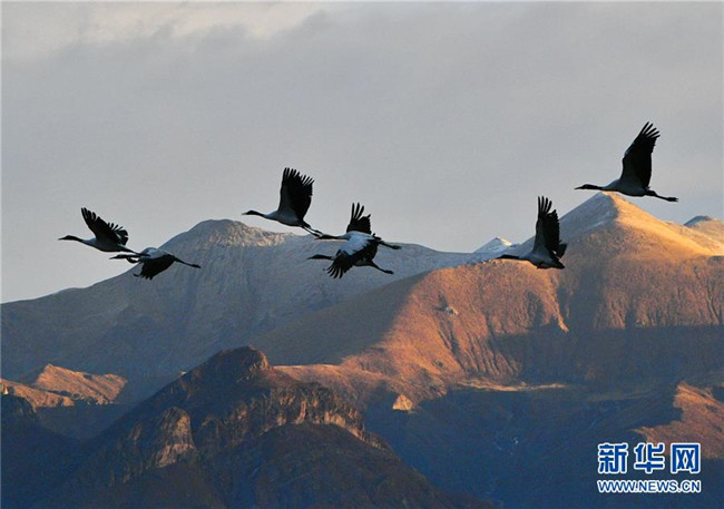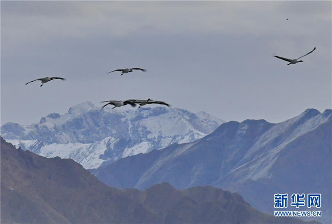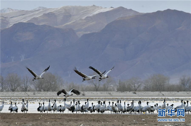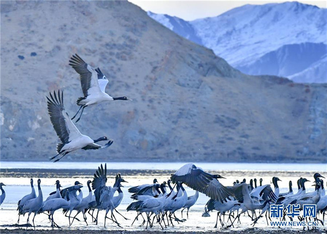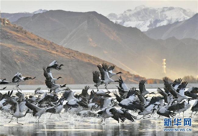 冬季,大批黑頸鶴來到西藏拉薩市達孜區(qū)和林周縣棲息、覓食。天地間鶴舞翩翩,賞心悅目。