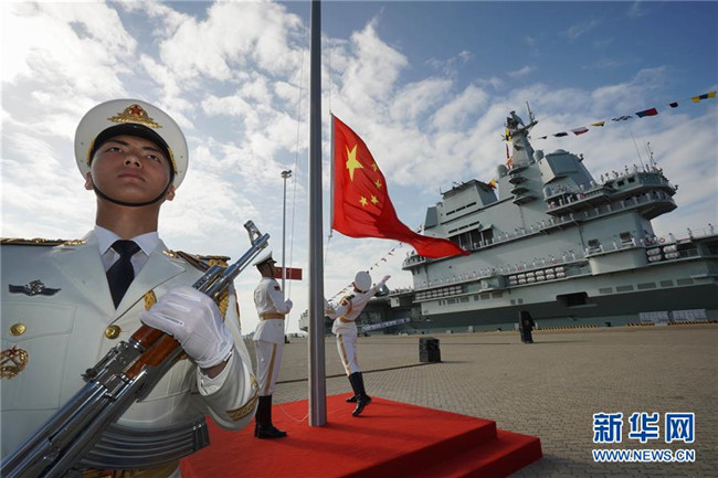 2019年12月17日,我國第一艘國產(chǎn)航空母艦山東艦在海南三亞某軍港交付海軍。經(jīng)中央軍委批準,我國第一艘國產(chǎn)航母命名為“中國人民解放軍海軍山東艦”,舷號為“17”。這是交接入列儀式現(xiàn)場。 新華社記者 李剛 攝