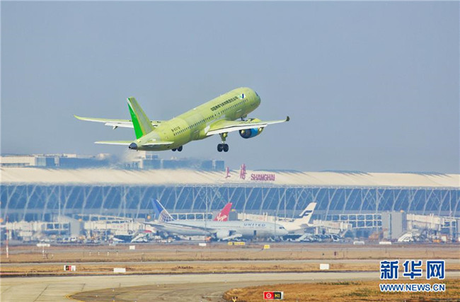 2019年12月27日,C919大型客機106架機在上海浦東機場起飛。 新華社發(fā)