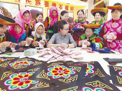 素隆姑公司在給繡娘分紅。互助縣扶貧開發(fā)局供圖