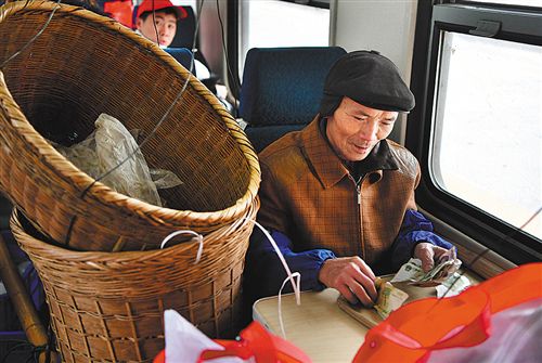 湖南省麻陽苗族自治縣郭公坪鎮(zhèn)雙竹坡村74歲的黃前代,在乘坐的7271次列車上算賬。他每3天至4天乘坐火車去銅仁銷售一次農(nóng)副產(chǎn)品,每個月可收入2000多元。