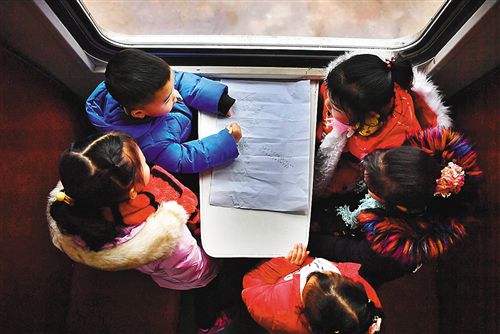 7269次列車上,幾位小學(xué)生在車廂里做作業(yè)。綠皮“慢火車”穿行在武陵山深處,為沿線百姓提供出行服務(wù)的同時,也承擔(dān)著學(xué)生上下學(xué)“校車”的責(zé)任。