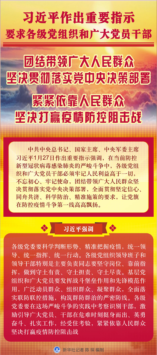 習(xí)近平作出重要指示要求各級黨組織和廣大黨員干部 團(tuán)結(jié)帶領(lǐng)廣大人民群眾堅決貫徹落實黨中央決策部署 緊緊依靠人民群眾堅決打贏疫情防控阻擊戰(zhàn)